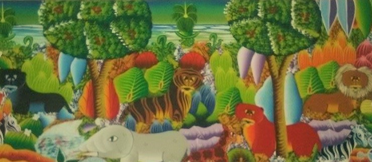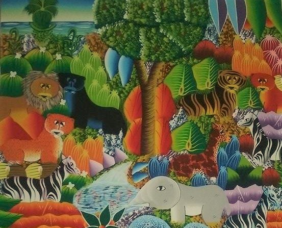 This jungle scene with lions, tigers, zebras, elephants, panthers, and more is perfect for a nursery or pediatrician office!